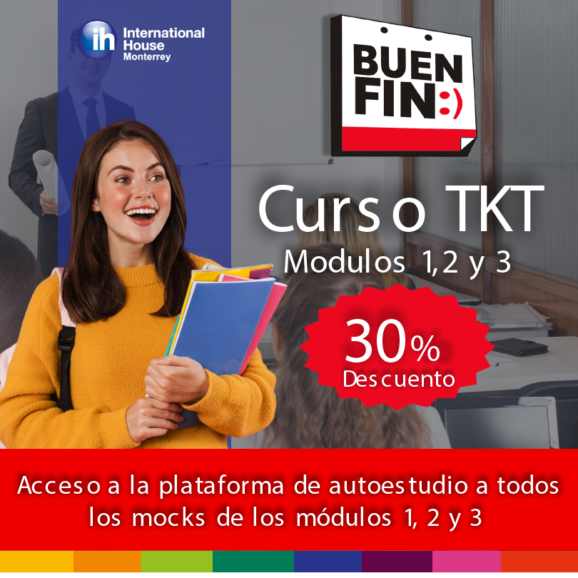 El curso preparatorio para TKT de los módulos 1, 2 y 3 tiene el 30% de descuento y las personas tendrán acceso además de a la plataforma de autoestudio a todos los mocks de los módulos 1, 2 y 3 que quieran.